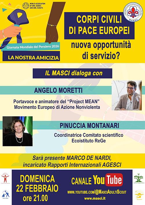 Nei giorni scorsi (22 e 23 Febbraio) si sono svolti due importanti eventi "in rete" relativi da un lato ai Corpi Civili di Pace Europei e, dall'altro, alle iniziative della "società civile" per l'Ucraina: in entrambe le occasioni è intervenuto Angelo Moretti portavoce del MEAN -Movimento Europeo di Azione NonViolenta con il quale sia il Masci che l'Agesci collaborano da tempo.