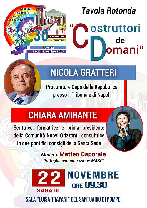 All'Assemblea Nazionale del Masci, svoltasi a Pompei, il 22 Novembre abbiamo ascoltato e dialogato con Chiara Amirante e Nicola Gratteri.